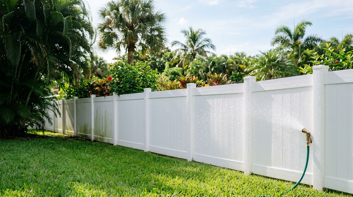 Vinyl is forgiving, but it can scratch and it can dull if harsh products sit too long. For deeper vinyl care, this Cape Coral vinyl fence maintenance guide pairs well with the steps below.