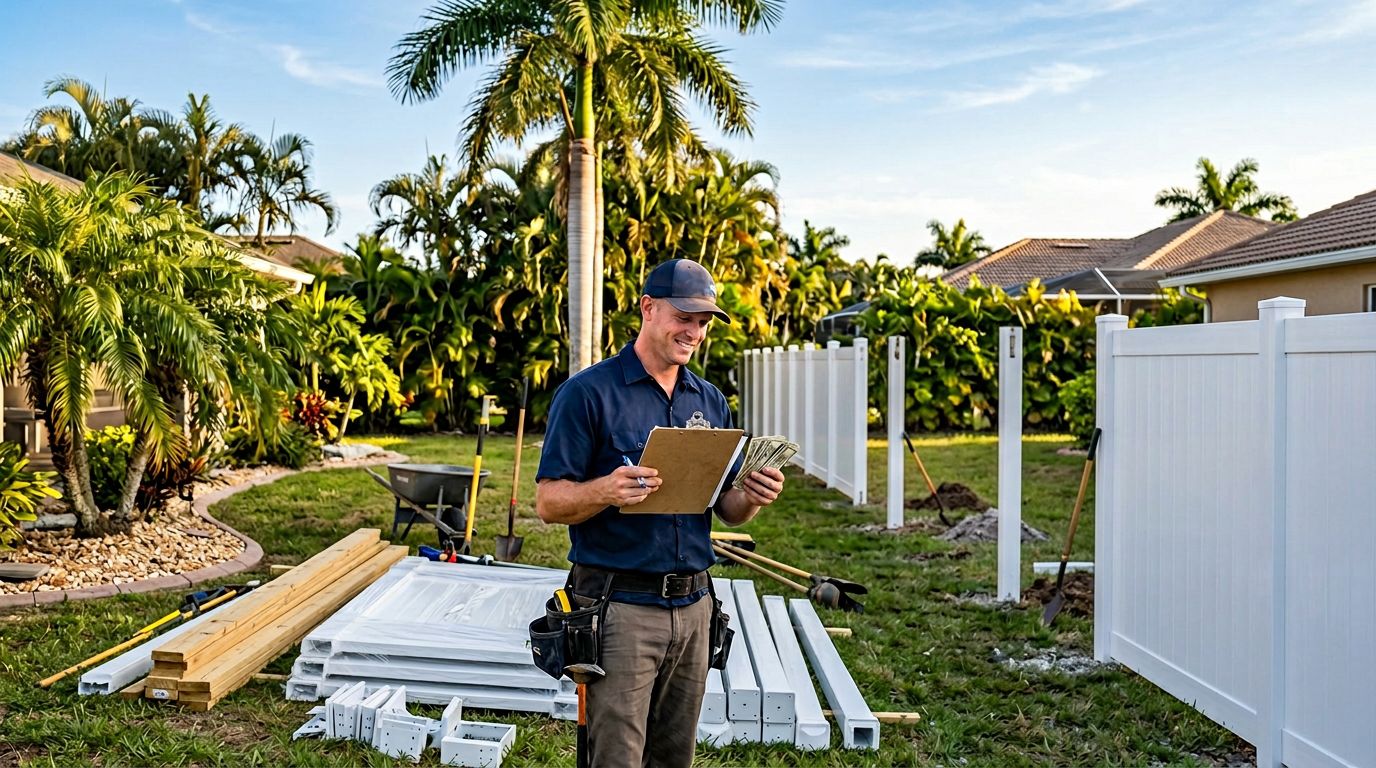 Cape Coral lots drain slow. Swales carry street water; block them, and your yard floods. Elevate fence bottoms 4-6 inches in low spots. Gravel under posts drains fast.